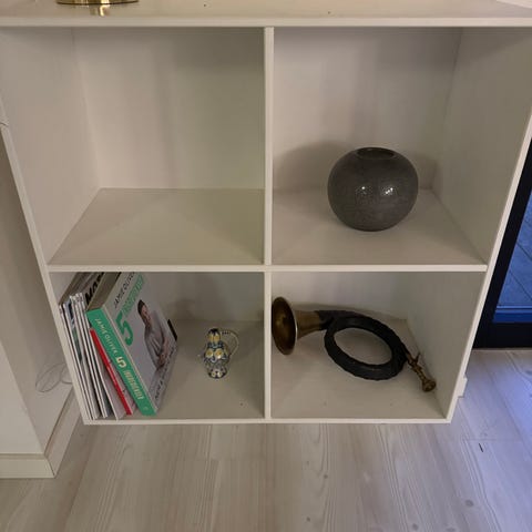 Flotte hvide reoler med væg ophæng. Nypris 1100 kr. pr styk. Sælges for 400 kr pr. Styk