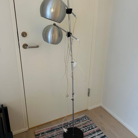 Belid gulvlampe fra 1970’erne i meget god stand, næsten som ny. Metal i hvid farve, højde ca. 127 cm og diameter 50 cm. Fungerer perfekt med kun let patina efter alder. Vintage skandinavisk design.