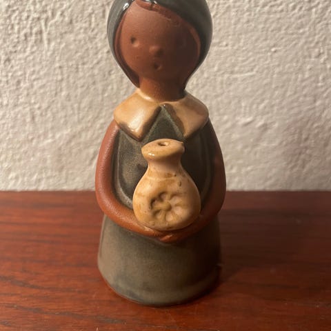 Dette er en vintage japansk stentøjsfigur af en pige med en vase.