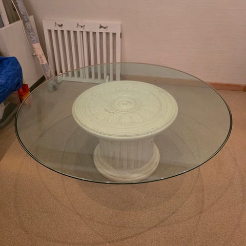 Sofabord rundt glasbord Stressless Jazz mål 100 Diamtr. Højde 48 cm, med glashylde 80cm 30 cm. fra gulv har få ridser. ingen skår i kanter, nypris 7000 kr nu Fast pris 1500 kr. nu fast pris 1200 kr. afhentes 2720 Vanløse i stuen