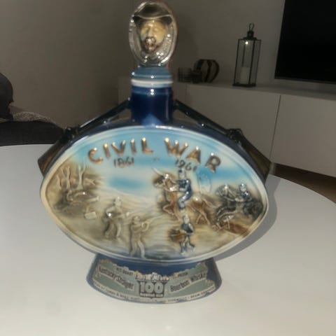 Flot flaske fra Belper & Denby Potteries. Formet som Abraham Lincoln. Lavet i saltglaseret stentøj.