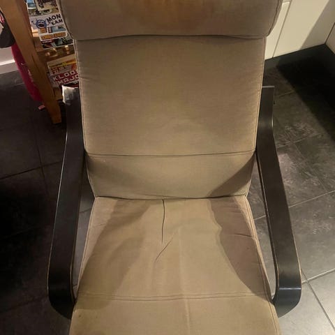 God lænestol. Den er godt at sidde i, men meget beskidt. Den er fra ikke-ryger hjem og ingen dyr.