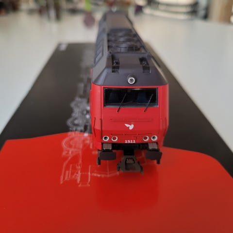 McK 0106 DSB ME 1515 modeltog i blå farve med røde detaljer. Modellen repræsenterer DSB ME 1515 lokomotivet fra perioden 2009-2016. Skala H0. Til AC drift. Med ESU 4.0 dekoder og 21 funktioner.