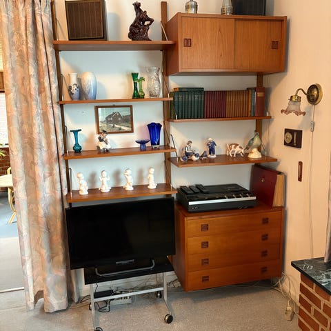 Vangereol i teak med ekstra hylder.