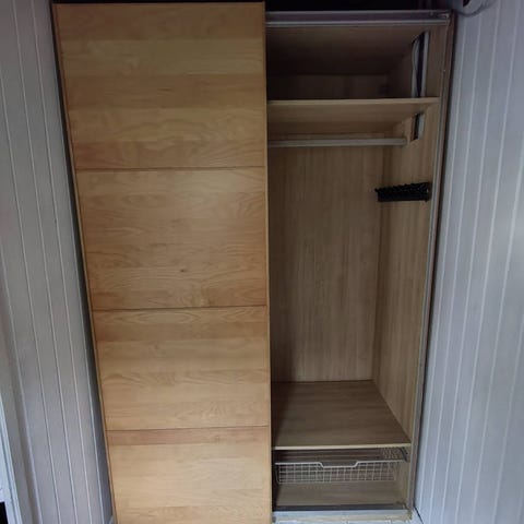 PAX Garderobeskab i bøg med spejllåge. Leveres med 2 skuffer, 3 trådhylder,3 alm. hylder samt 1 bøjlestang. Kan sammensættes efter behov.