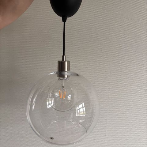 Flot stor loftlampe i dobbelt glas fra ikea.