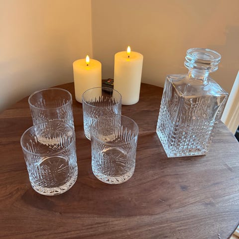 Whisky det med 6 glas og en flaske. Sætter er købt i Italien