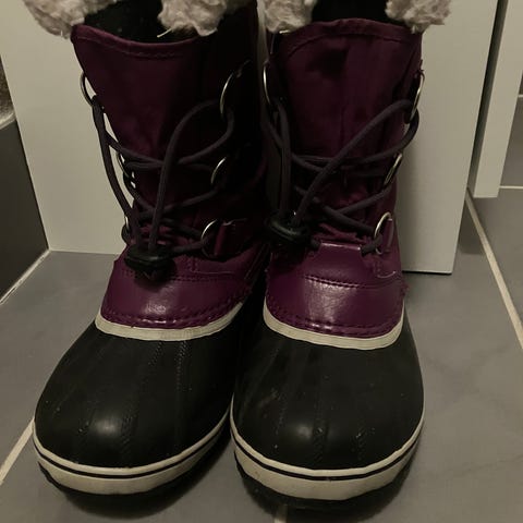 Sorel støvler str. 35. Sort. Næsten som nye. Udtagelig og vaskbar indersål. Vandafvisende tex membran. Indvendig sål er 23,5 cm.