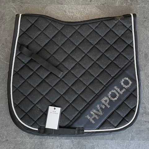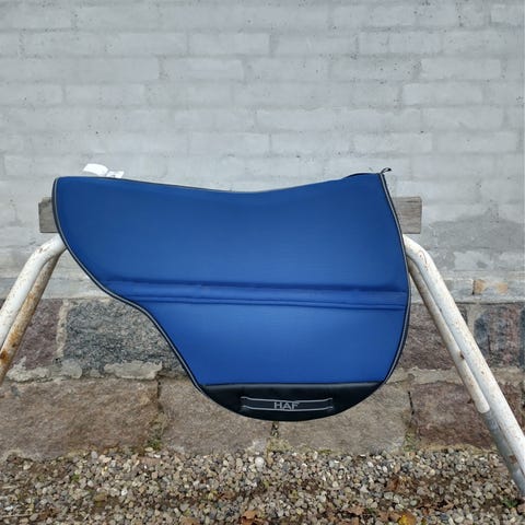 Lækkert trykfordelende underlag med overside i sort mesh og underside i grå neopren. Underlaget har lommer med bløde skumindlæg på 2 cm i tykkelsen. Underlaget er hurtigtørrende og svedtransporterende og det er et perfekt underlag til distance eller lange ture. Underlaget passer også til mange bomløse sadler. Det er 65 cm langt og 50 cm højt. Sælges da det er lidt for langt til min sadel. Det er vasket, men der medfølger lidt gratis hestehår :-)
