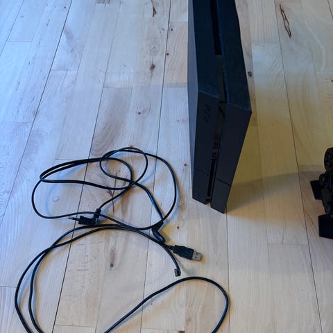 Sony Playstation 4 spillekonsol med hvid controller og kabler