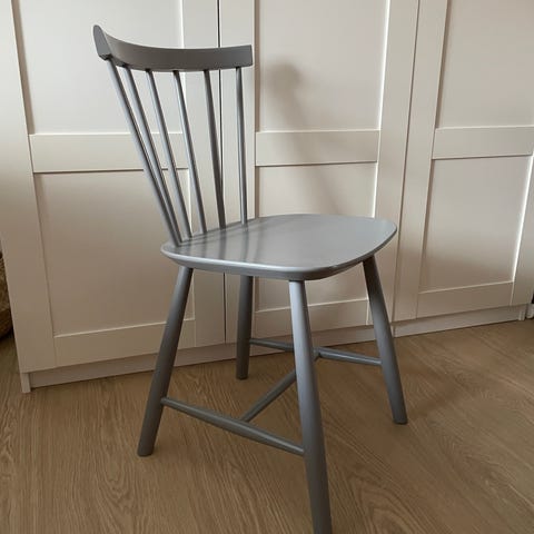 FDB stol J46 i Original blå farve sælges. Stolen er pæn og velholdt, dog skal ryggen/tremmerne limes, da de er løse.