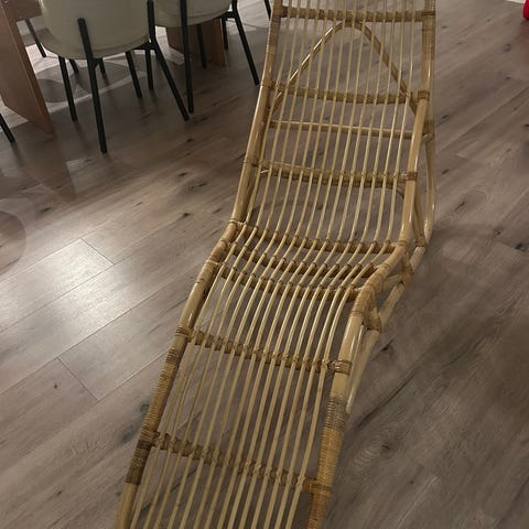 Rattan liggestol i sort farve. Passer til udendørs brug og kan anvendes til afslapning i haven eller på terrassen.