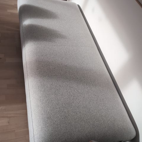 På den korte tid den har stået fremme, har vores kat desværre lavet et par mærker i toppen af ryglænet, der dog kun kan ses, hvis man kigger godt efter. Desuden et par skrammer i afdækningen i bunden og en uforklarlig misfarvning på et af benene. Fremstår ellers næsten som ny.