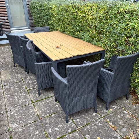 Udendørs havebord og stole sæt i metal og træ
