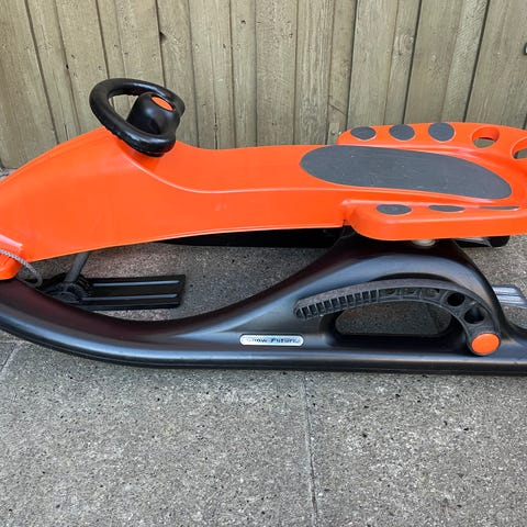 Mountain racer slæde i rød. Der kan sidde to på den. Super sjov og hurtig bobslæde / kælk. Fejler ikke noget. Valgt i sin tid ud fra sikkerhed, nemhed til bremsen og kvalitet.