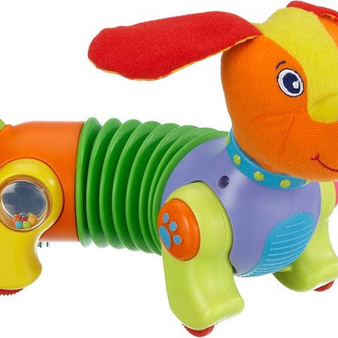 Sød hund med lys og lyd fra B BEEZ. Hunden har 40 forskellige melodier som ikke kun underholder men også stimulerer høresans og musikalske nysgerrighed. Hunden har hjul som ikke kun gør den nem at skubbe rundt men også fremmer motorisk udvikling. De forskellige knapper aktiverer forskellige melodier og lysmønstre, hvilket hjælper med at udvikle hånd-øje-koordination og kognitive færdigheder.