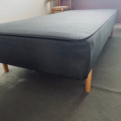 Boxmadras med ben i lyst træ. Benene er 20 cm.