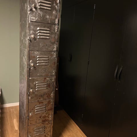 Jeg sælger dette interessante værkstedsskab man kan sætte hængelås på .