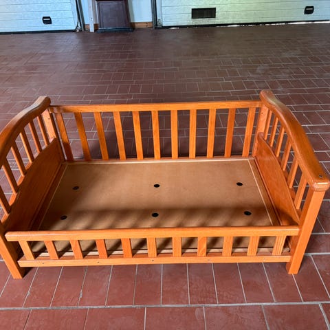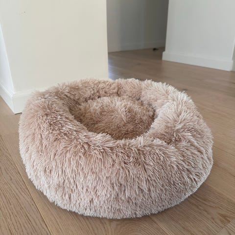 Fin hundeseng / hundekurv i pænt træ og med pude. Helt ny i emballage.