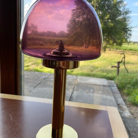 God kvalitet - lidt patina på messing - intakt glas skærm.