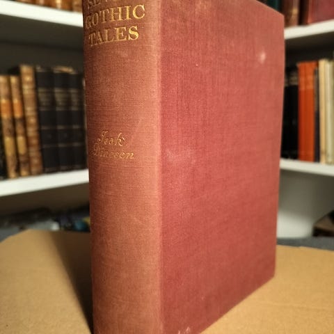 Isak Dinesen/Karen Blixen: Seven Gothic Tales by Isak Dinesen. London, Putnam, 1934. 3. oplag. 522 sider. Frontispiece af Rex Whistler. Forreste den af smudsomslaget indlagt i bogen. Ejernavne på friblad. Sender gerne. Kan også afhentes i Odense SØ.