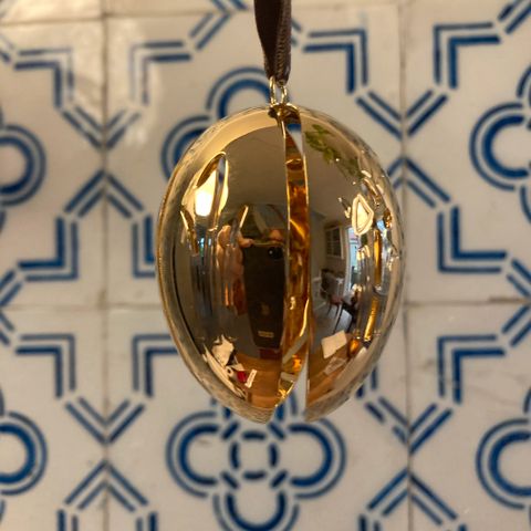 Påskeæg i forgyldt messing med original snor fra 2005 - ingen æske. Ingen skader eller skavanker - kan godt tåle lidt sæbevand:-)