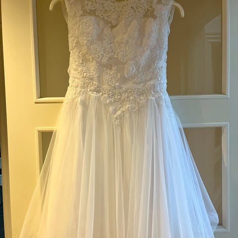 Rigtig fin konfirmations kjole med blonde overdel og kug til åben ryg.
