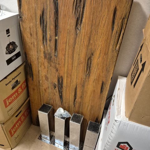 Sofabord i genbrugstræ og jern stel