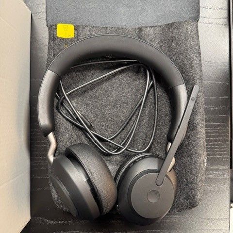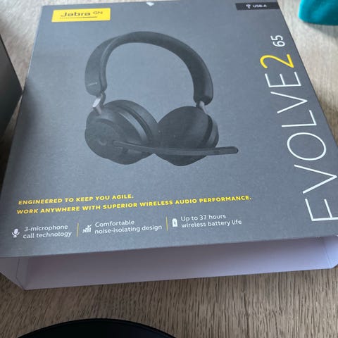 Jabra Evolve2 65 headset (wireless) med aktiv støjreduktion (ANC / Active Noise Cancellation) og støjreducerende mikrofon. Designet til professionel brug med komfortabel pasform og lang batterilevetid. Farve: Sort.