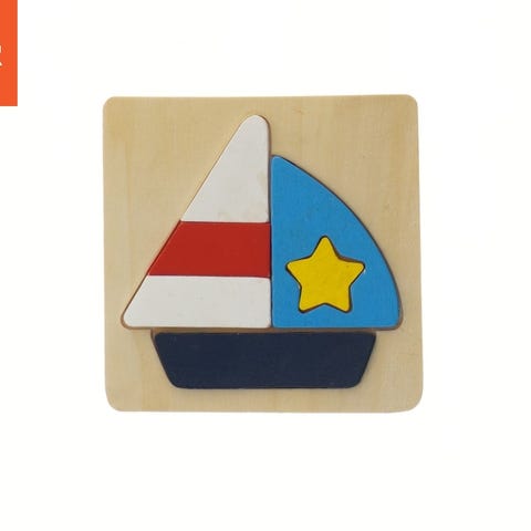 Træskib med en højde på 45 cm. Modellens detaljer inkluderer flere sejl og en traditionel skibsstruktur i træ.