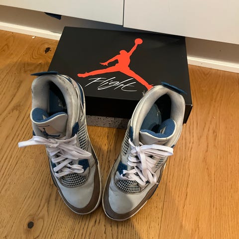 Air Jordan sneakers i størrelse 43. Skoene er sorte med gule detaljer. Designet med klassisk Air Jordan-logo på tungen og ydersålen. Velegnede til daglig brug og sportsaktiviteter.