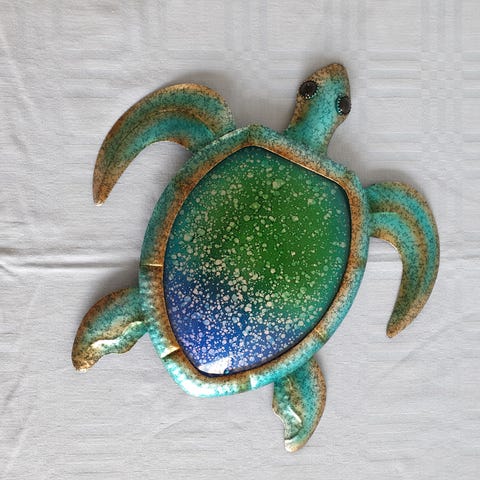 Fin lampe med glas mosaik i form af en skildpadde. Fin stand. Sender ikke. Nypris 600kr.