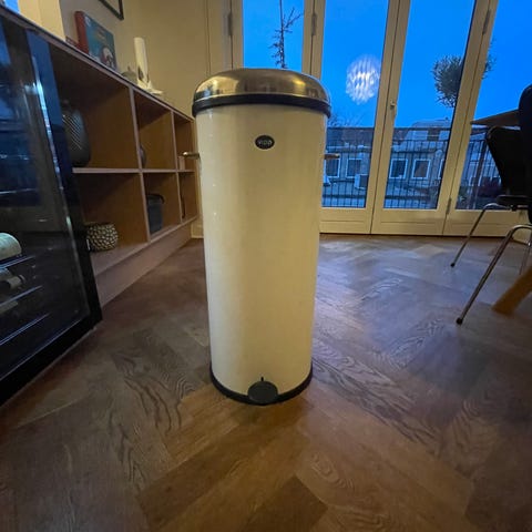 Vipp skraldespand i sort. Købt fra ny for et år siden. Fremstår i din stand, men er lidt slidt indeni (se billede). Ny pris: 2.300 kr. Kan afhentes på Amager.