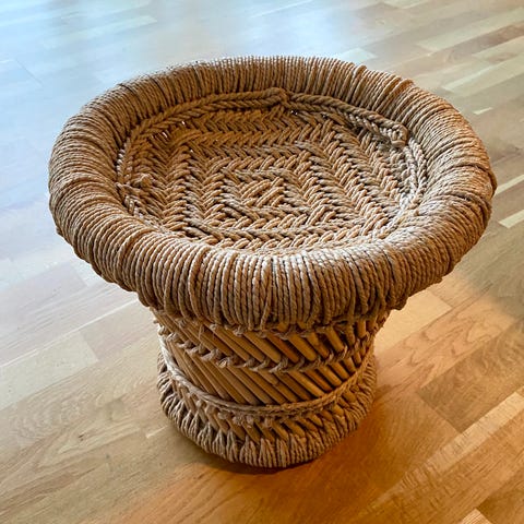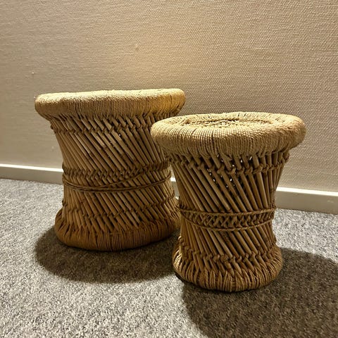 Flot bambusskammel med hvid pude sælges.