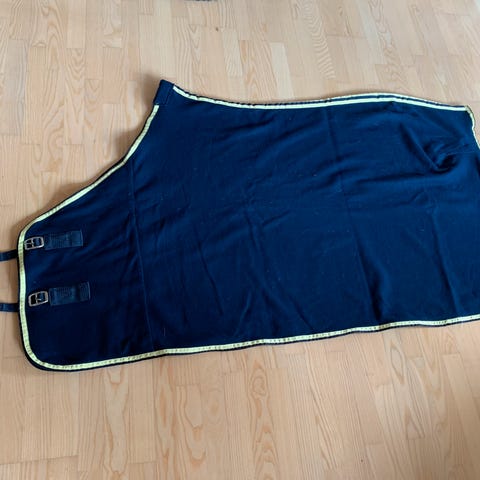Pikeur Fleece dækken i navy farve med lyserøde striber langs kanterne. Dækkenet er lavet af fleece materiale.