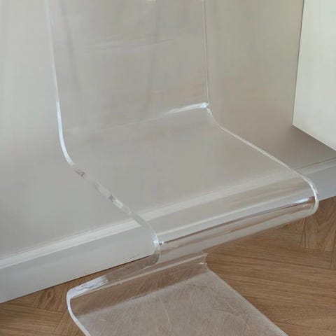 Smuk zig zag stol i plexieglas, minder om Gerrit Rietveld zig zag stol i træ.