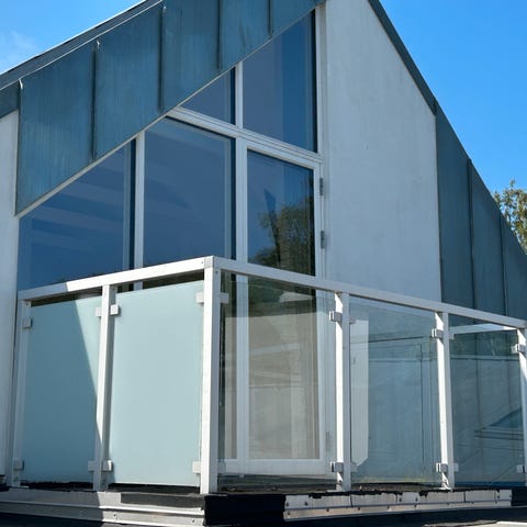 Terrasseoverdækning i rustfrit stål og glas, fra 2012.