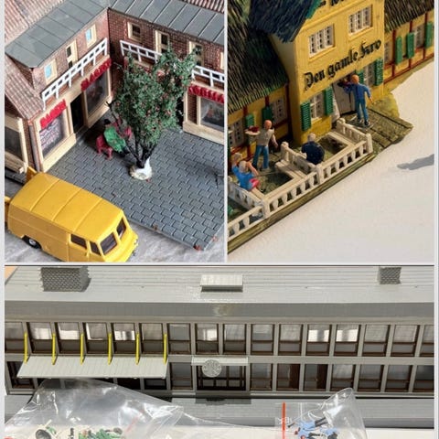 Der medfølger en pose med dvs skilte, DSB vingehjul samt passagere, en servicebil og nogle jernbanefolk.