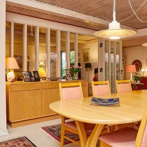 Har to indbyggede spots i "loftsbjælkerne" (den ene skal have udskiftet pæren)
