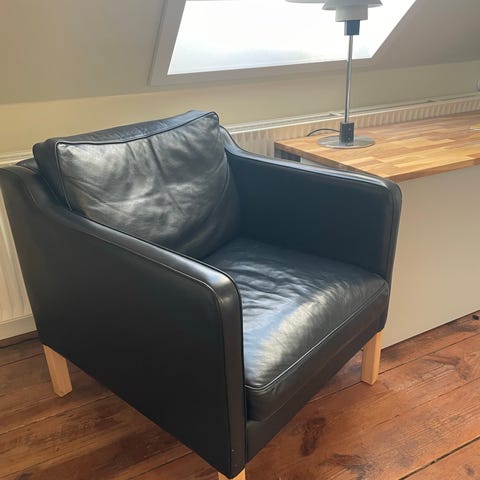 Super lækker ko læder lænestol. Virkelig behagelig at sidde i. Dejlig komfort. Robust. Patina look. Sælges grundet pladsmangel.