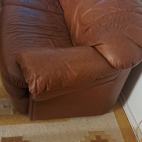 Flot lædersofa, som dog har brugsspor. Kan afhentes på Nørrebro på 3. sal😊