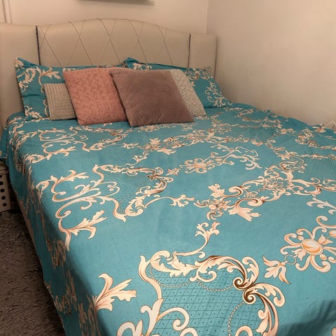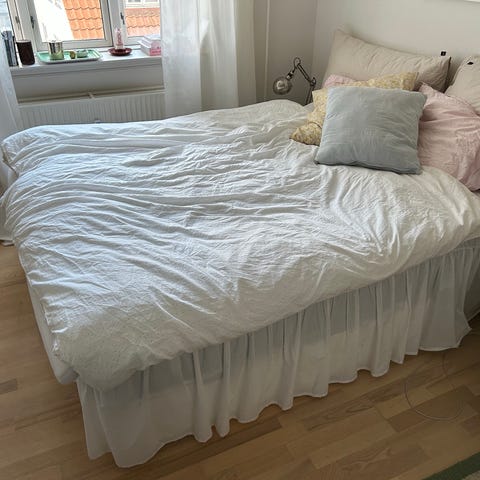 Sengen kan samles så bunden kan løftes og bruges til opbevaring, bemærkning den er tung! Vi bor på 1.sal uden elevator men bred opgang og parkering ude foran