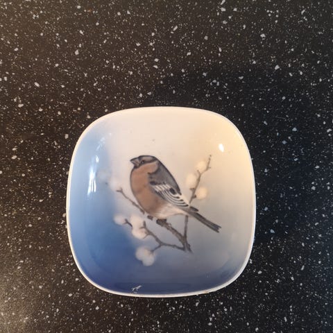 Måler i diameter 17,5 cm og er i meget fin stand. Har aldrig været benyttet hverken som askebæger eller andet.