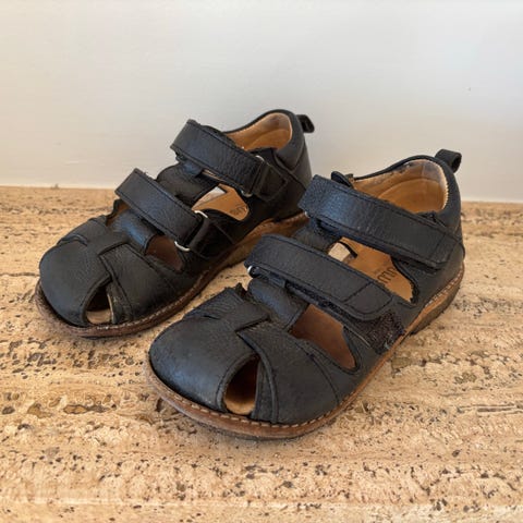 Angulus børnesandal i størrelse 30, designet til både drenge og piger. Sandalen er lavet af sort læder og har justerbare spænder for bedre pasform.