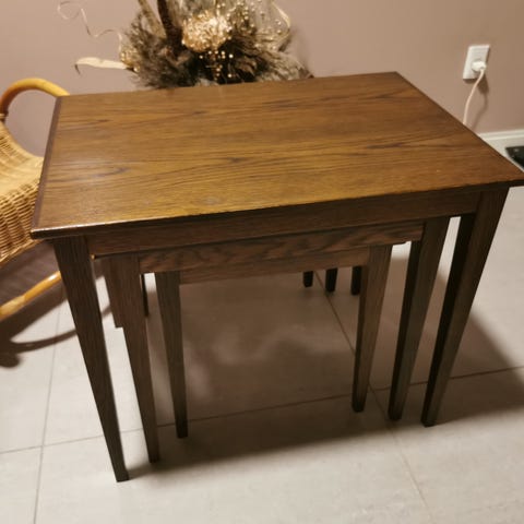Indskudsbord med 3 borde. Målene er for det store bord. De to andre borde bliver ca 8x4cm mindre for hvert bord.