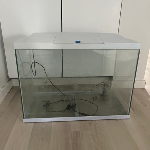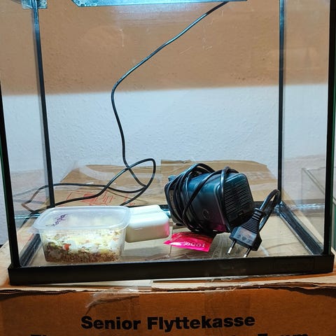 Der er varmelegemer os med og luft pumpe i akvariet