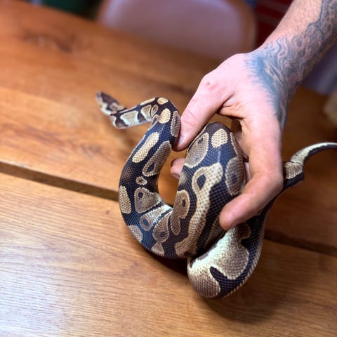 Super sød kongepython søger nyt hjem. Hun er alm wild type, fungere helt som hun skal og appetitten fejler intet. Hun er proven breeder