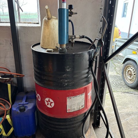 Er helt ren har kun indeholdt kædesavsolie, og har ikke stået åben, eller udendørs.