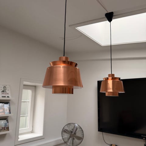 Utzon JU1 pendelen fra &Tradition er et designikon skabt af Jørn Utzon - manden bag operahuset i Sydney - og blev oprindeligt tegnet i 1947 som en hyldest til arkitektoniske former og funktionel belysning. Denne eksklusive Limited Edition kombinerer rosa lak og poleret messing, hvilket giver lampen et luksuriøst og dekorativt udtryk. Lampen er i fin stand med mindre brugsspor.