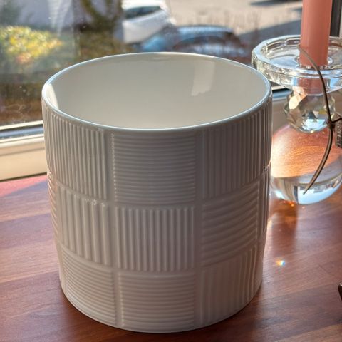 Rosendahl keramik urtepotte designet af Nanna ditzel med et mønstret design. Urtepotten er hvid og har en glat overflade med relieflignende firkantede mønstre. Velegnet til indendørs brug til planter.